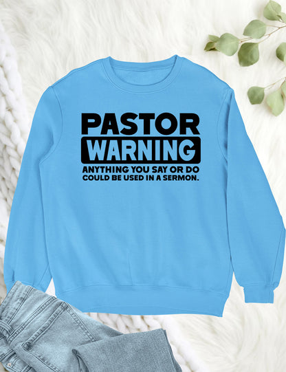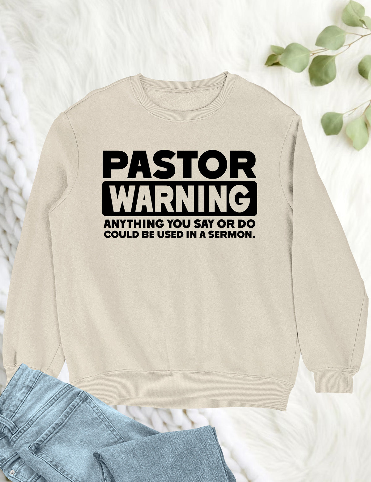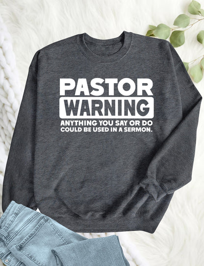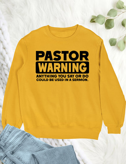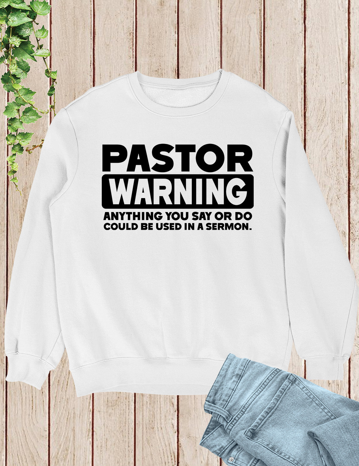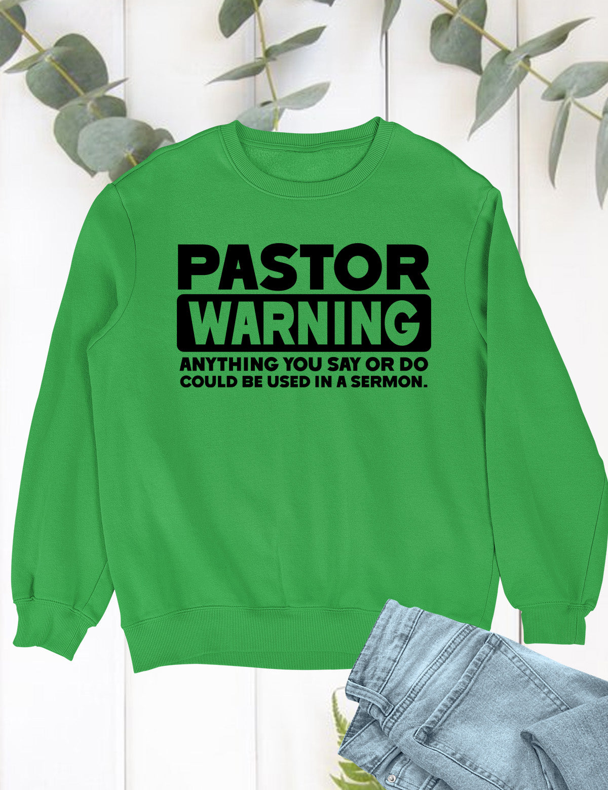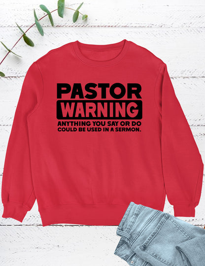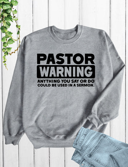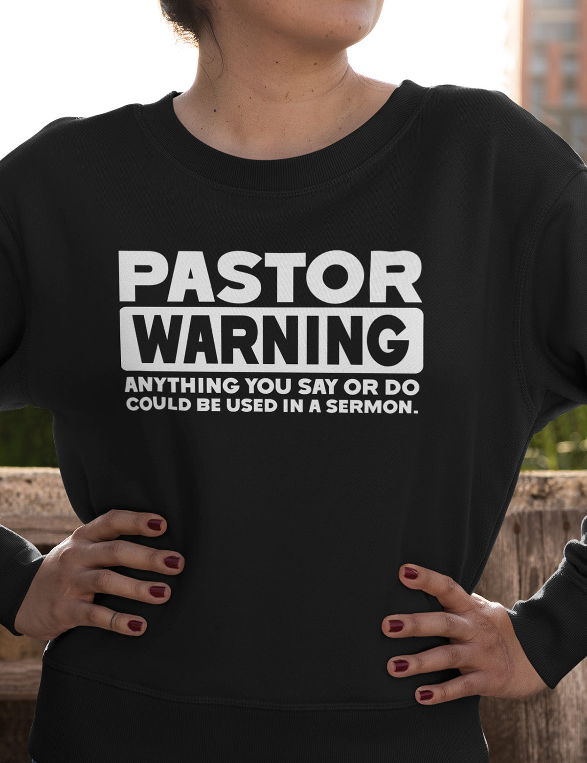 Stay warm and stylish during Sunday service with our Pastor Warning Sweatshirt for church. Made with comfortable and durable fabric, this sweatshirt features a bold warning message, making it a great conversation starter. Perfect for pastors and churchgoers alike.