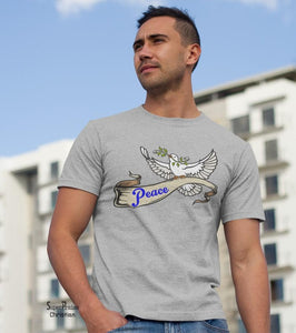 Stay comfortable and spread a message of peace with our Peace Christian T Shirt. Made with premium quality fabric, this t-shirt is perfect for everyday wear. Let your style speak for itself and show your support for your faith.
