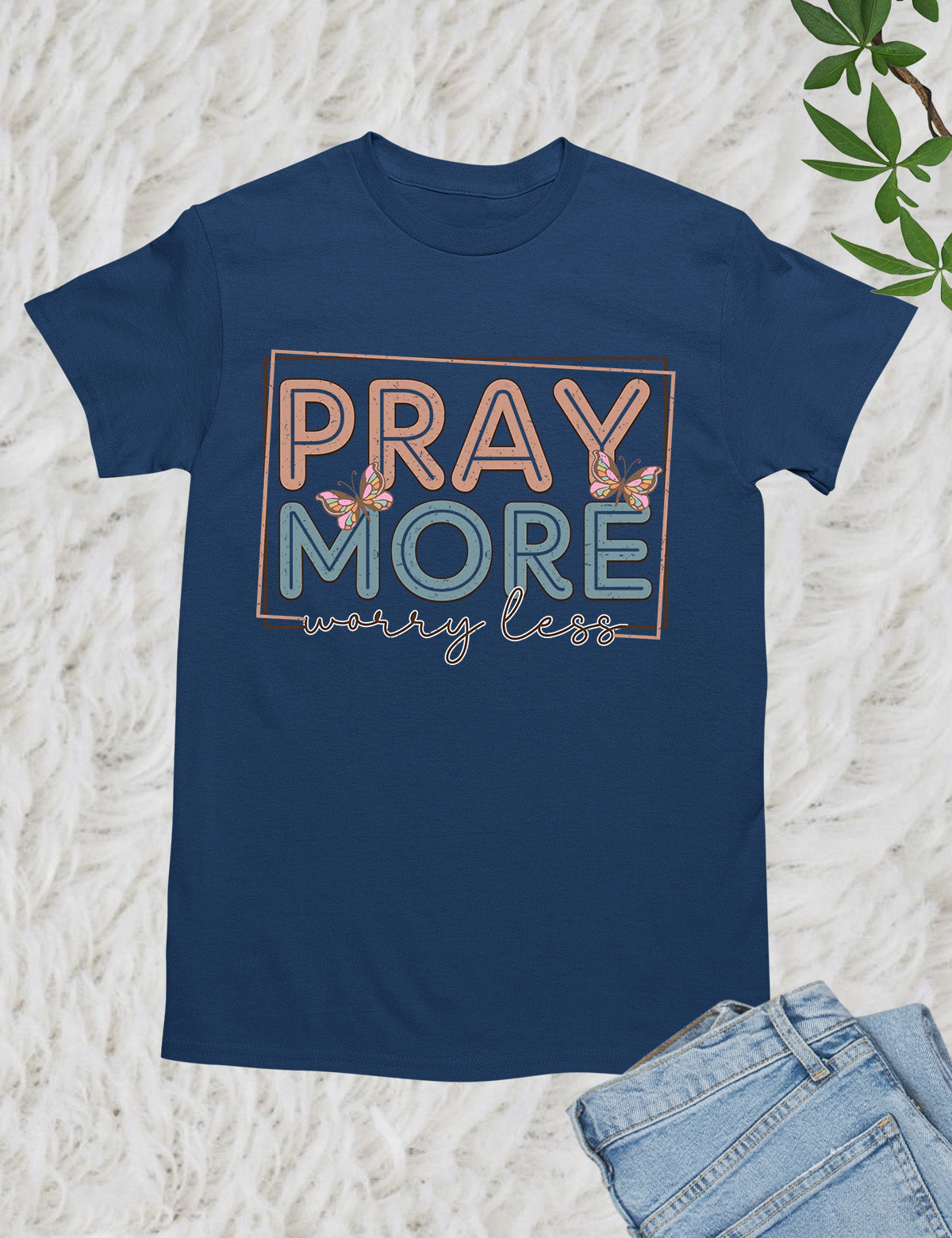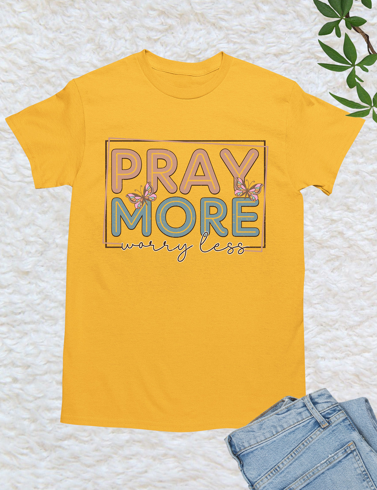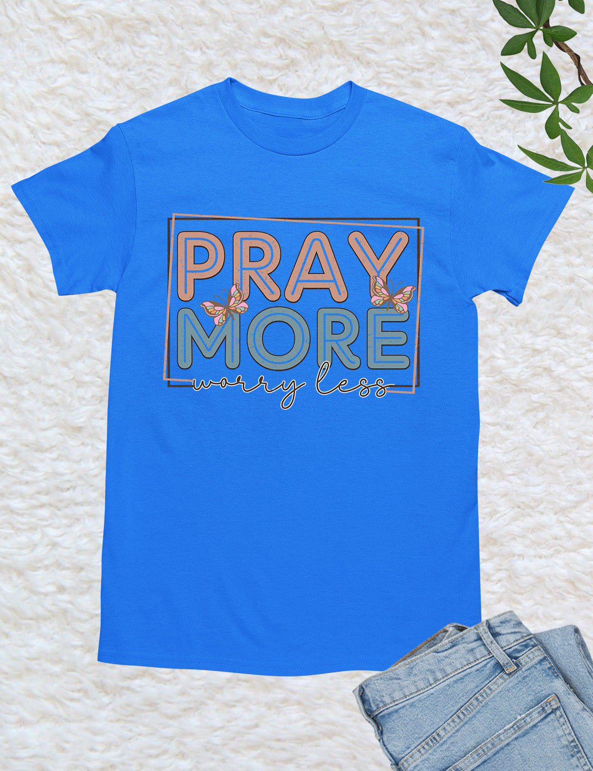 As an industry expert, I highly recommend the Pray More Worry Less Shirt. Crafted with quality material, this shirt serves as a reminder to focus on prayer and not on worries. With its simple yet effective design, it is perfect for everyday wear and makes for a meaningful gift. Made with 100% cotton.