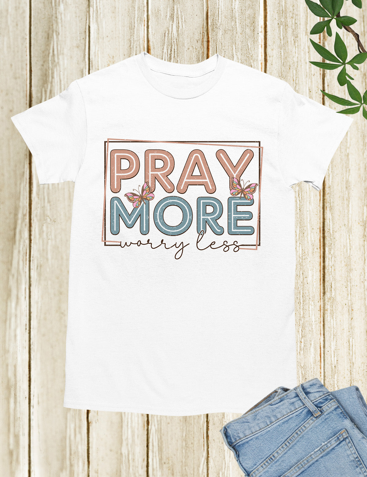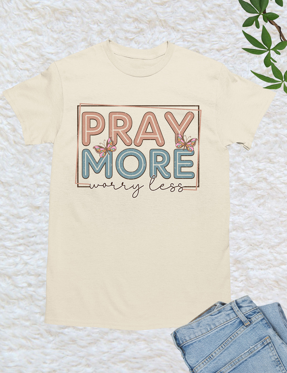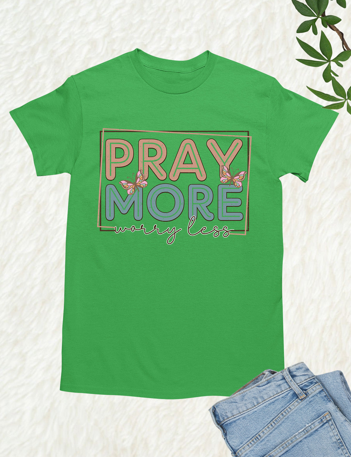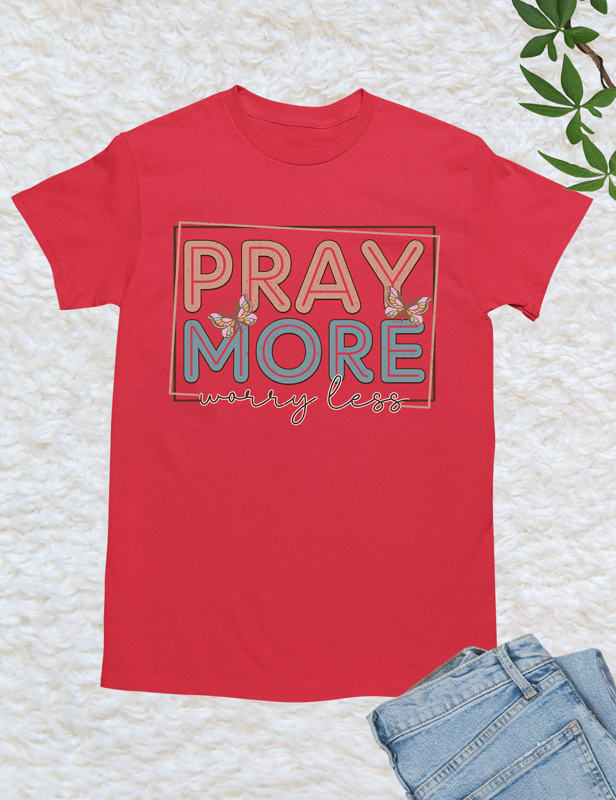 As an industry expert, I highly recommend the Pray More Worry Less Shirt. Crafted with quality material, this shirt serves as a reminder to focus on prayer and not on worries. With its simple yet effective design, it is perfect for everyday wear and makes for a meaningful gift. Made with 100% cotton.