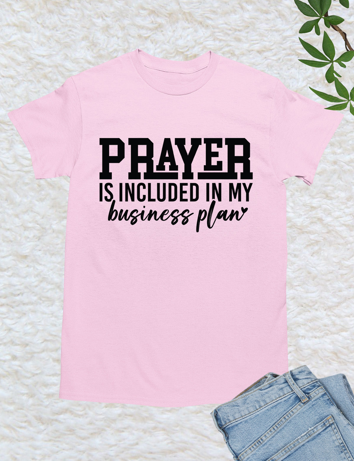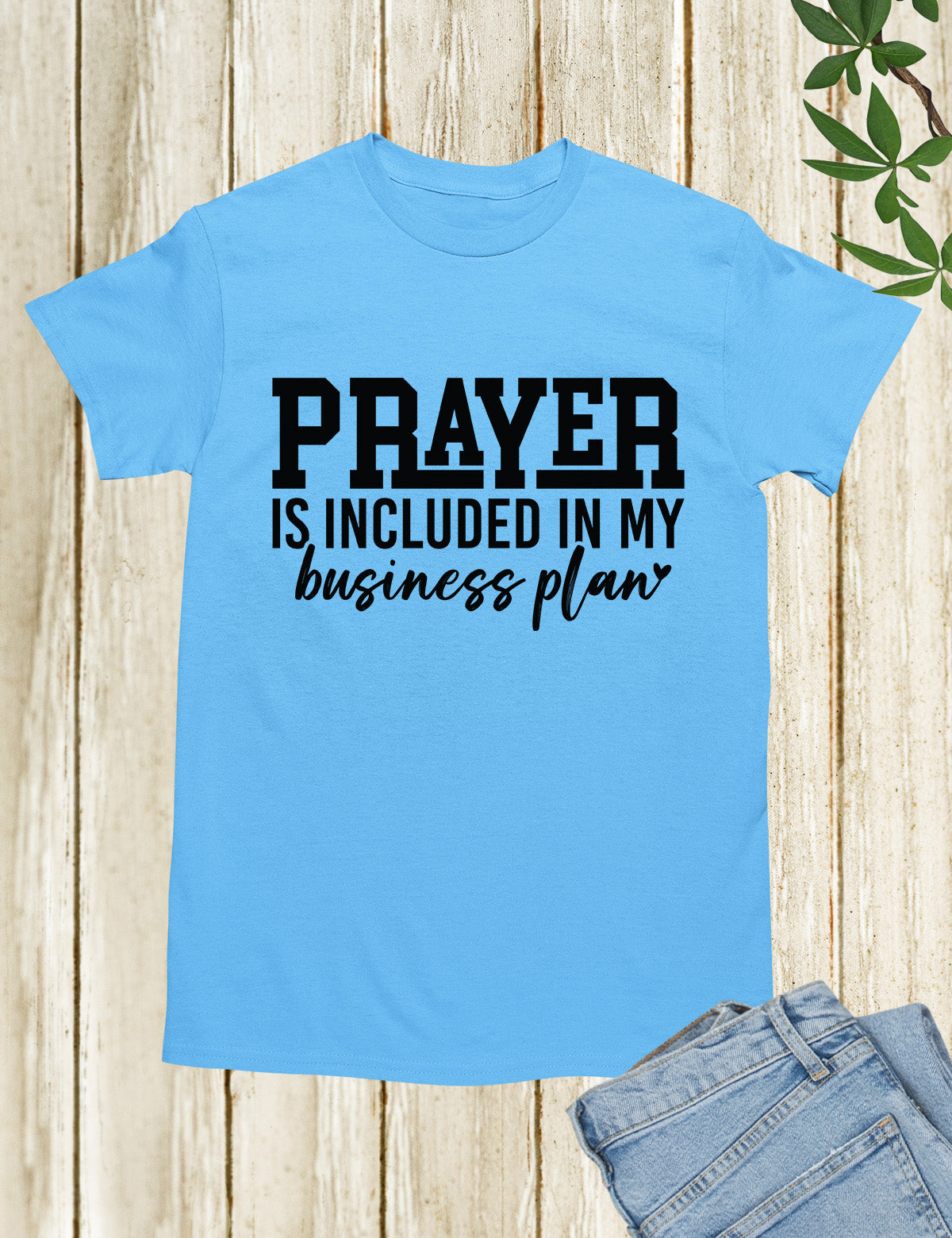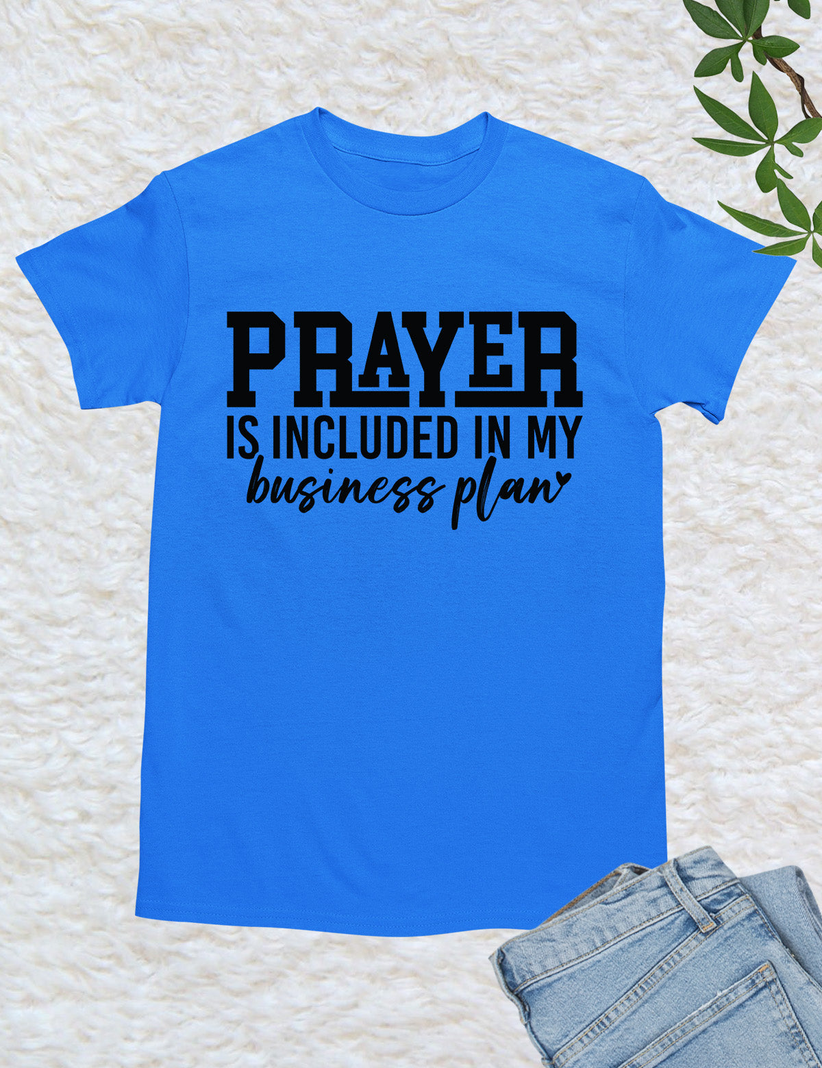 Boost your productivity and success with our "Prayer is Included My Business Plan" t-shirt. Incorporate prayer into your daily business routine and see the positive impact it has on your goals and mindset. Crafted with quality materials, this shirt is a must-have for any ambitious and faith-driven entrepreneur.