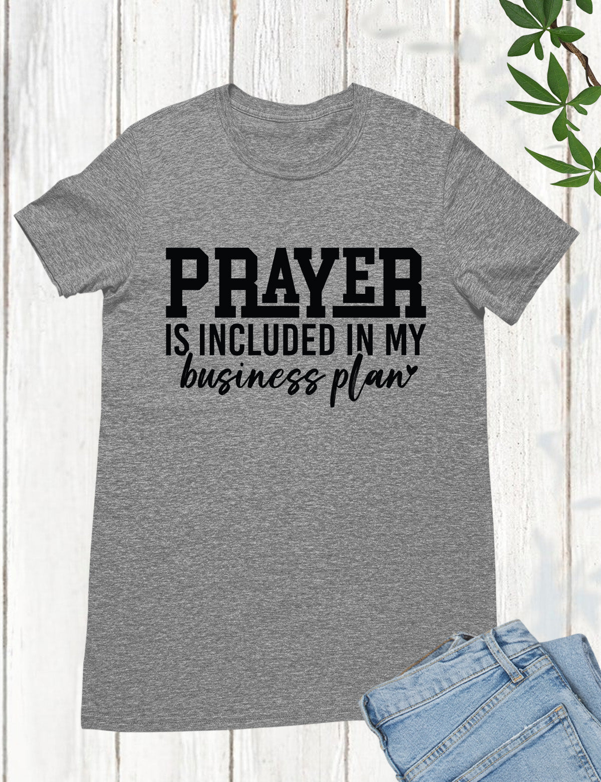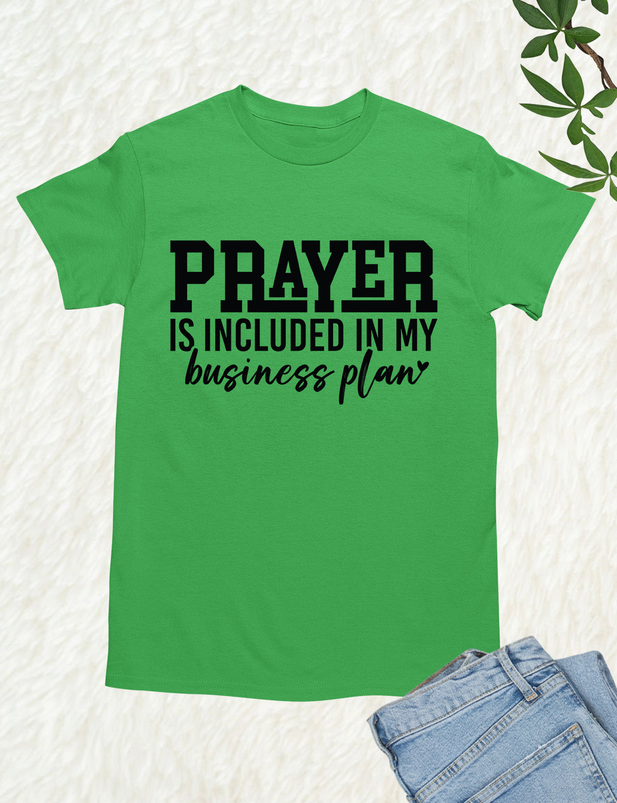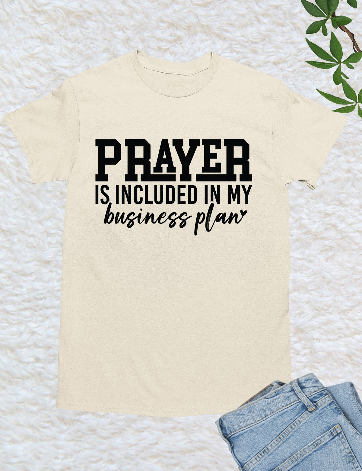 Boost your productivity and success with our "Prayer is Included My Business Plan" t-shirt. Incorporate prayer into your daily business routine and see the positive impact it has on your goals and mindset. Crafted with quality materials, this shirt is a must-have for any ambitious and faith-driven entrepreneur.