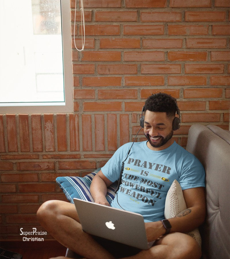 Discover the true strength of prayer with our "Prayer Is The Most Powerful Weapon" t-shirt! Made with high-quality material and a powerful message, this shirt serves as a reminder of the power of prayer. Show off your faith and motivate others with this shirt. Available now.