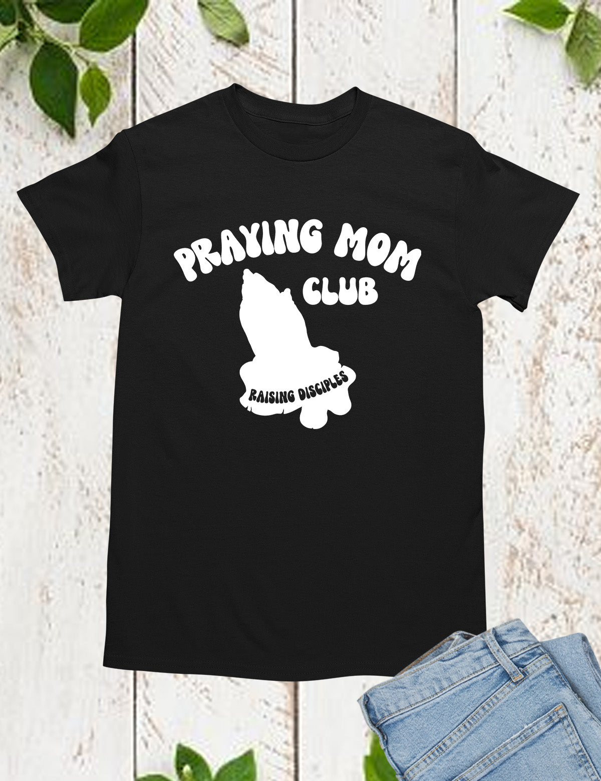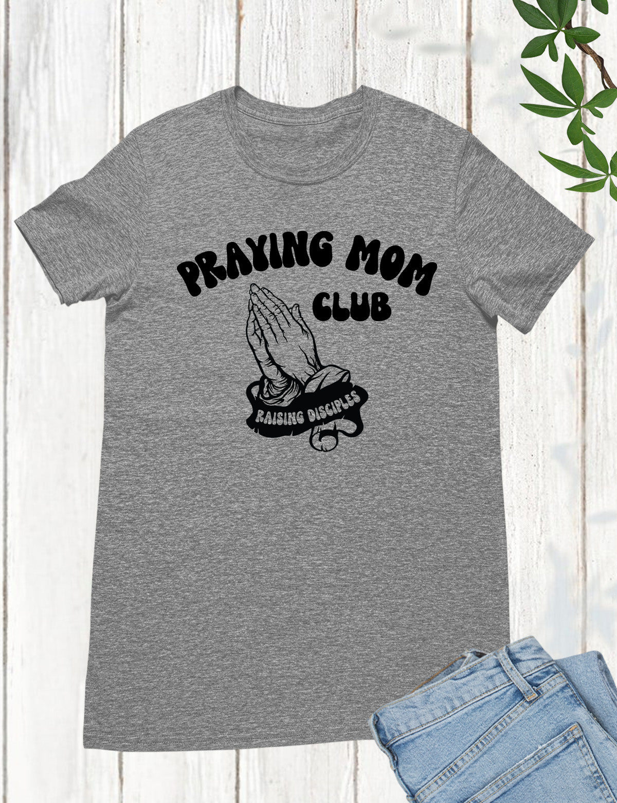 Join the Praying Mom Club with this stylish shirt. Made with comfortable material and featuring a unique design, this shirt is perfect for any mom looking to connect with other prayerful mothers. Let this shirt be a reminder of your faith and support within the community.