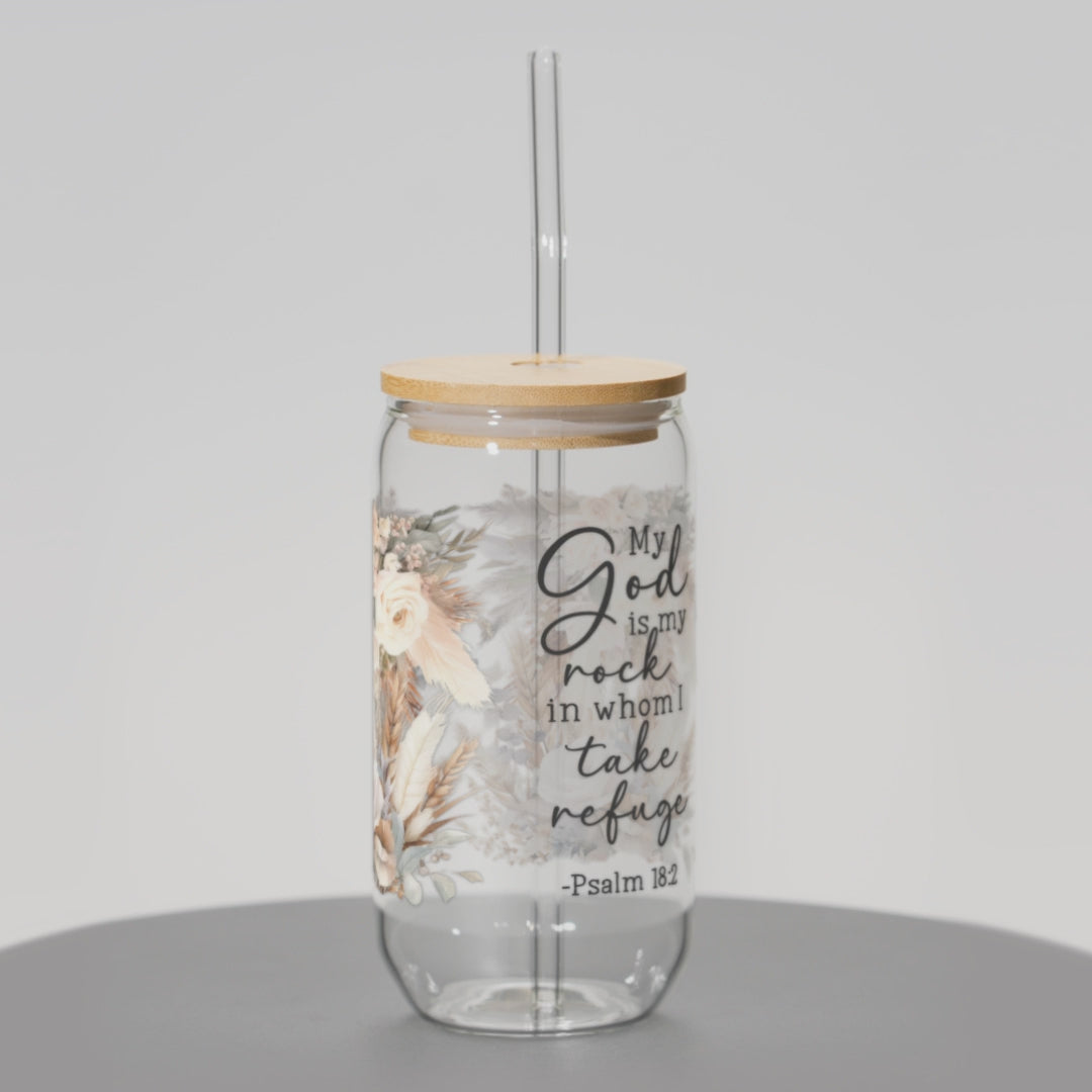 Enhance your Bible study and daily devotionals with our Psalm Bible Verse Libbey Glass Tumbler. Made with durable glass and equipped with a lid and straw, it's perfect for on-the-go use. Stay hydrated while being reminded of your favorite scripture.