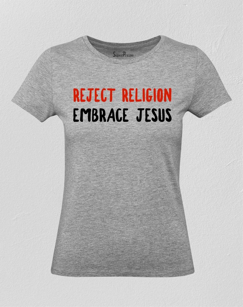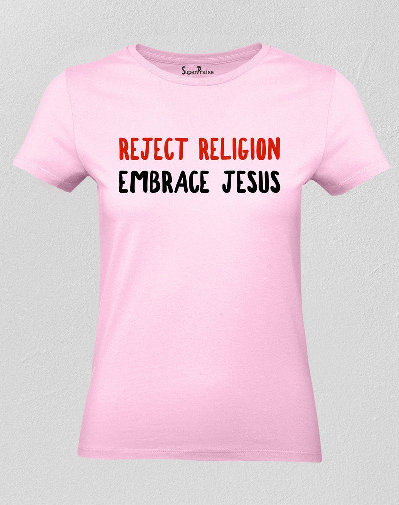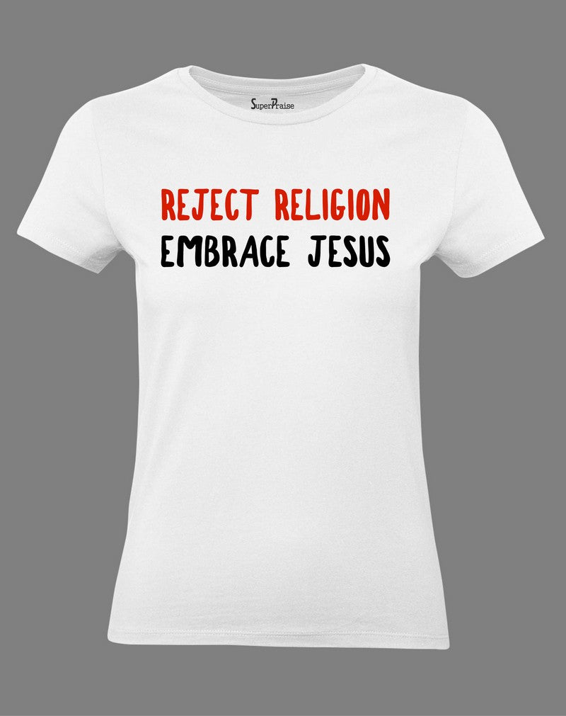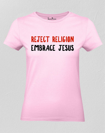 Christian Women T Shirt Reject Religion Embrace Jesus Quote