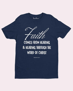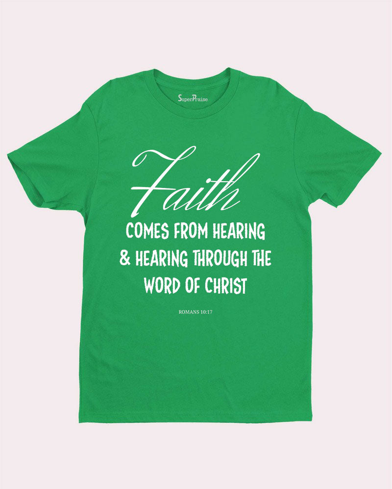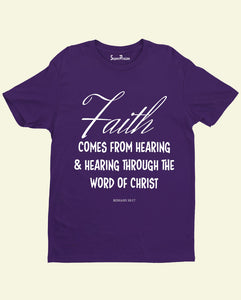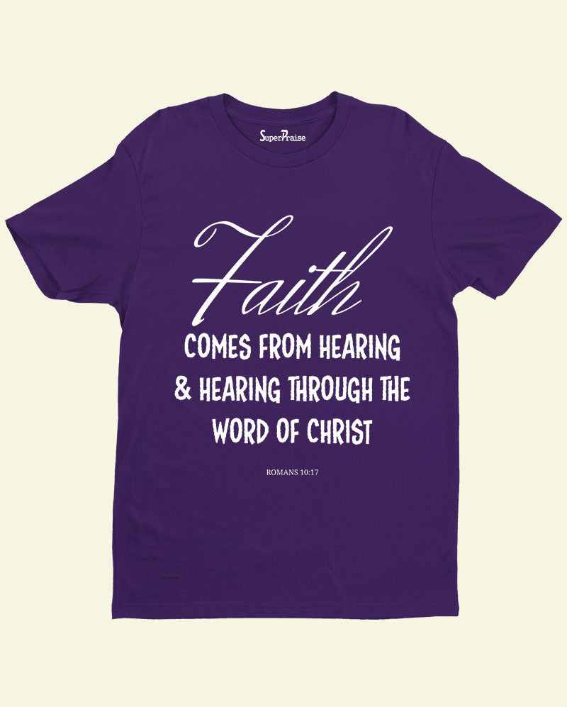 This Romans 10:17 T Shirt features a powerful quote from the Bible that reminds us of the importance of faith. Made with high-quality materials, this shirt is comfortable and durable for everyday wear. Wear it as a reminder of the power of belief and share the message with others.