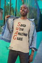 The Saved With Amazing Grace SWAG T Shirt is the perfect statement piece for any believer. Made with high quality materials, its bold design showcases your faith while bringing comfort and style. A portion of the profits go towards charity, making it a great purchase with a purpose.
