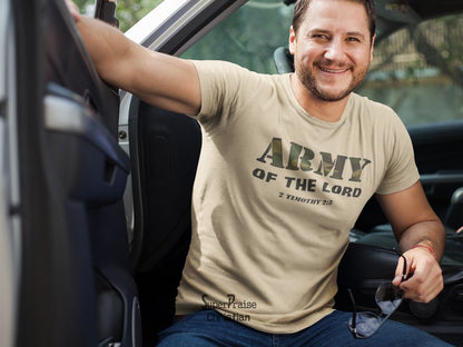 Be a true soldier in the army of the Lord with this durable t-shirt. Made with quality materials, it features a bold design that showcases your faith. Perfect for everyday wear or as a statement piece for special occasions. Stay strong and proud as a member of His army.