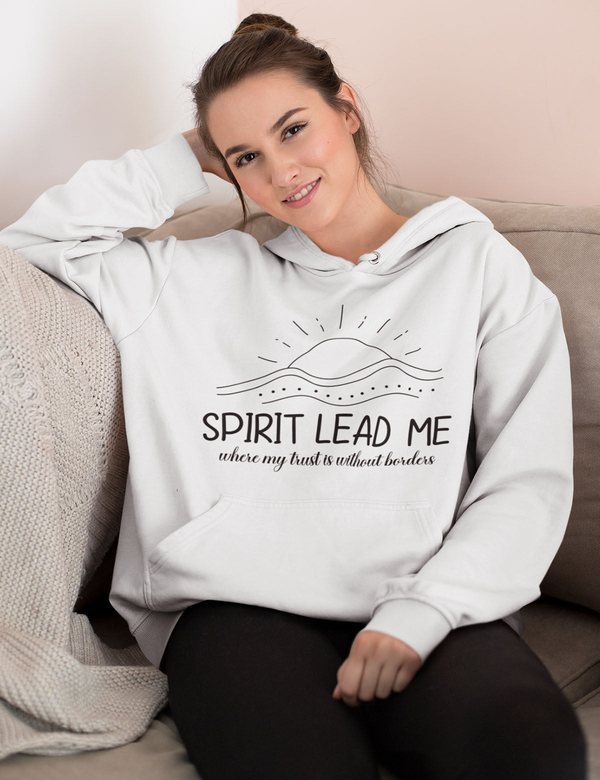Stay warm and connected with the Spirit Lead Me Hoodie. From casual outings to spiritual retreats, this hoodie's soft fabric and adjustable drawstrings provide both comfort and stability. With its classic design and powerful message, this hoodie is perfect for those who seek guidance and strength.