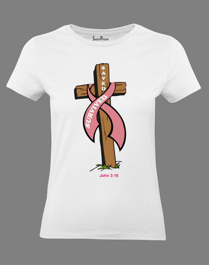 Christian Faith Women T Shirt Saved Survived Jesus