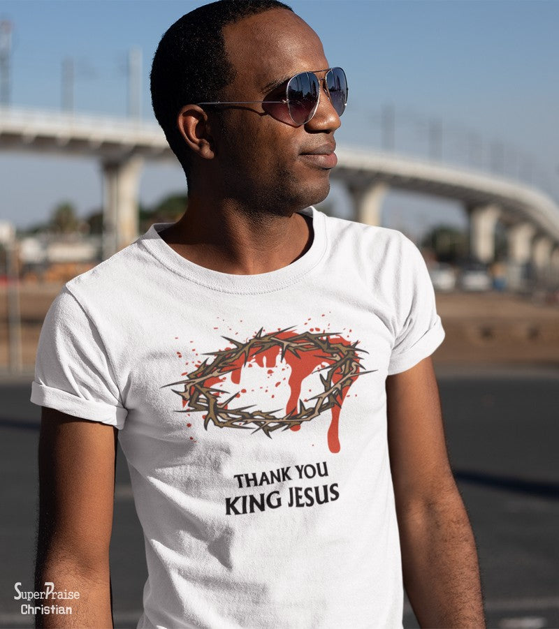 This Thank You King Jesus Religious Love Christian T Shirt is the perfect way to show your devotion and love for the Christian faith. Made with high-quality materials, this shirt boasts a powerful message that will leave a lasting impression. Spread the word with this eye-catching and meaningful tee.