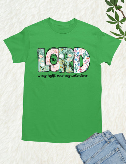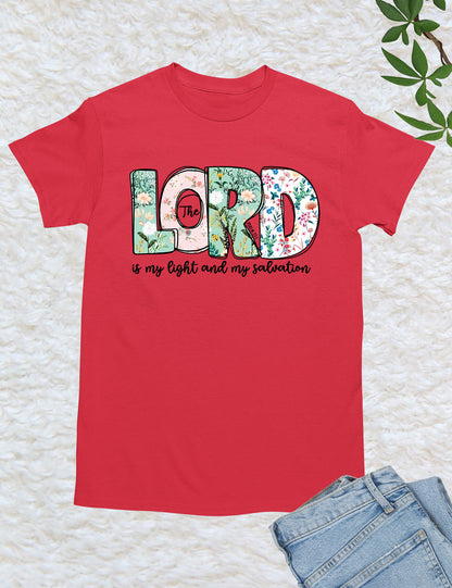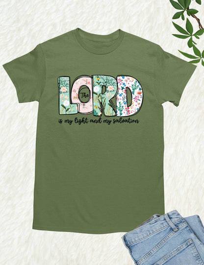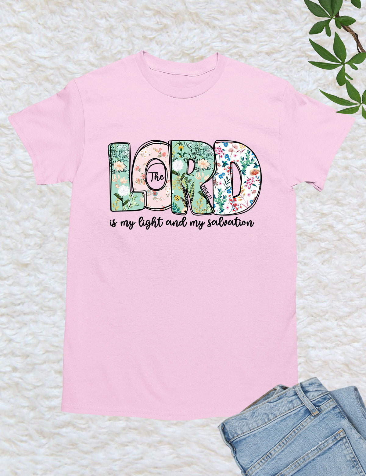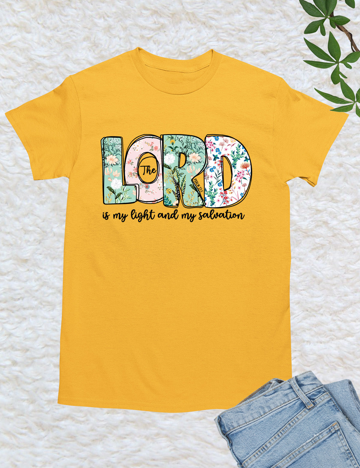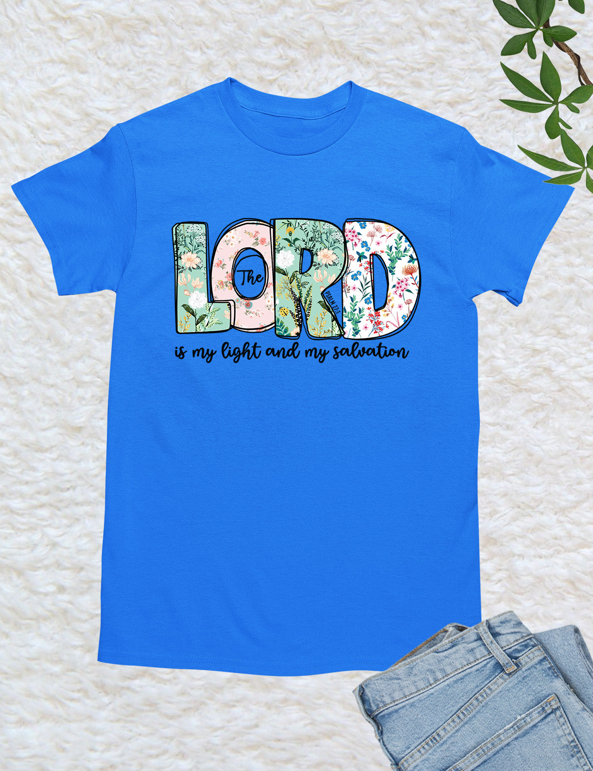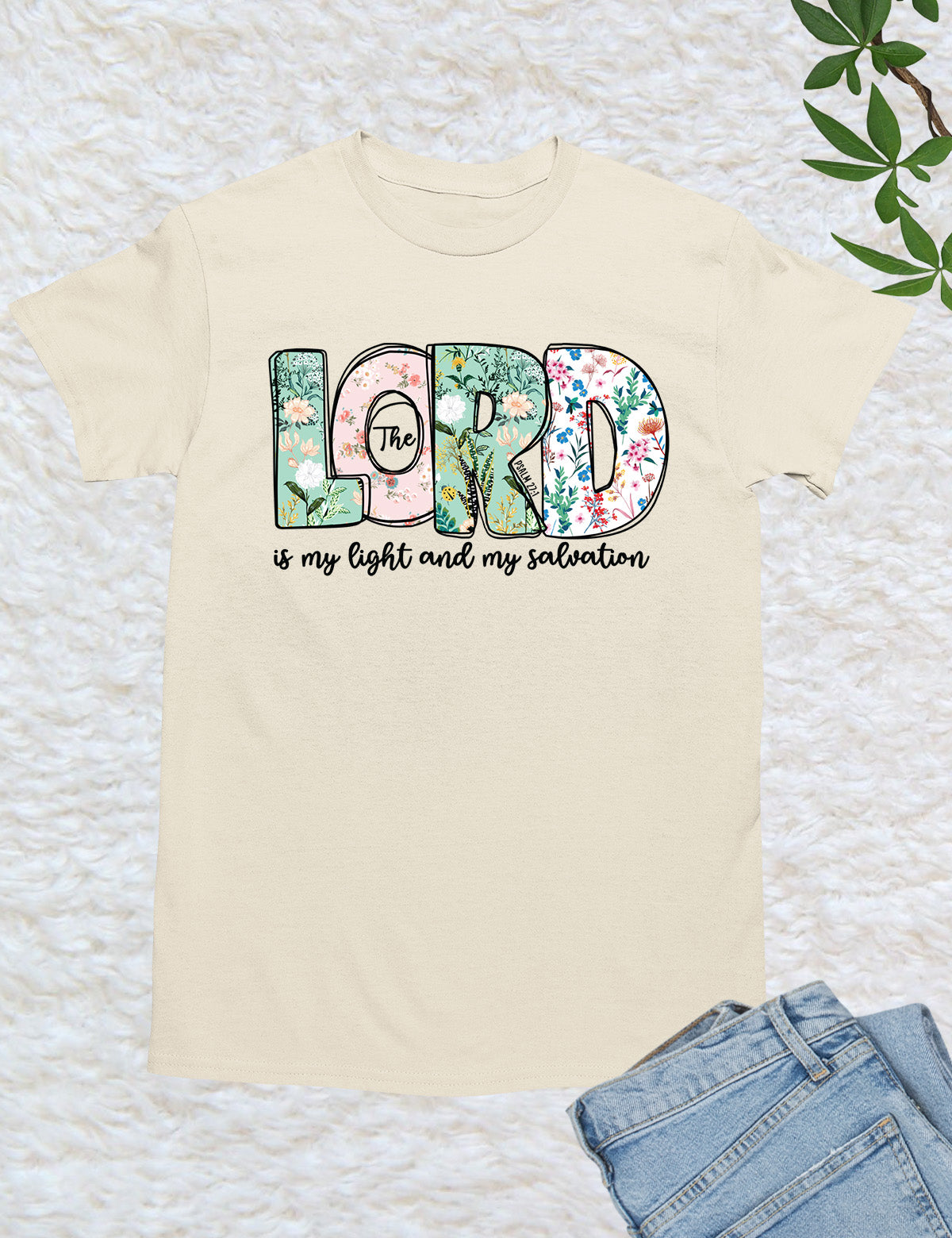 This shirt features the powerful message "The Lord is My Light and Salvation" written in a beautiful floral design. Perfect for sharing your faith and reminding others of the hope and strength found in the Lord. Made with high-quality materials for comfort and durability.
