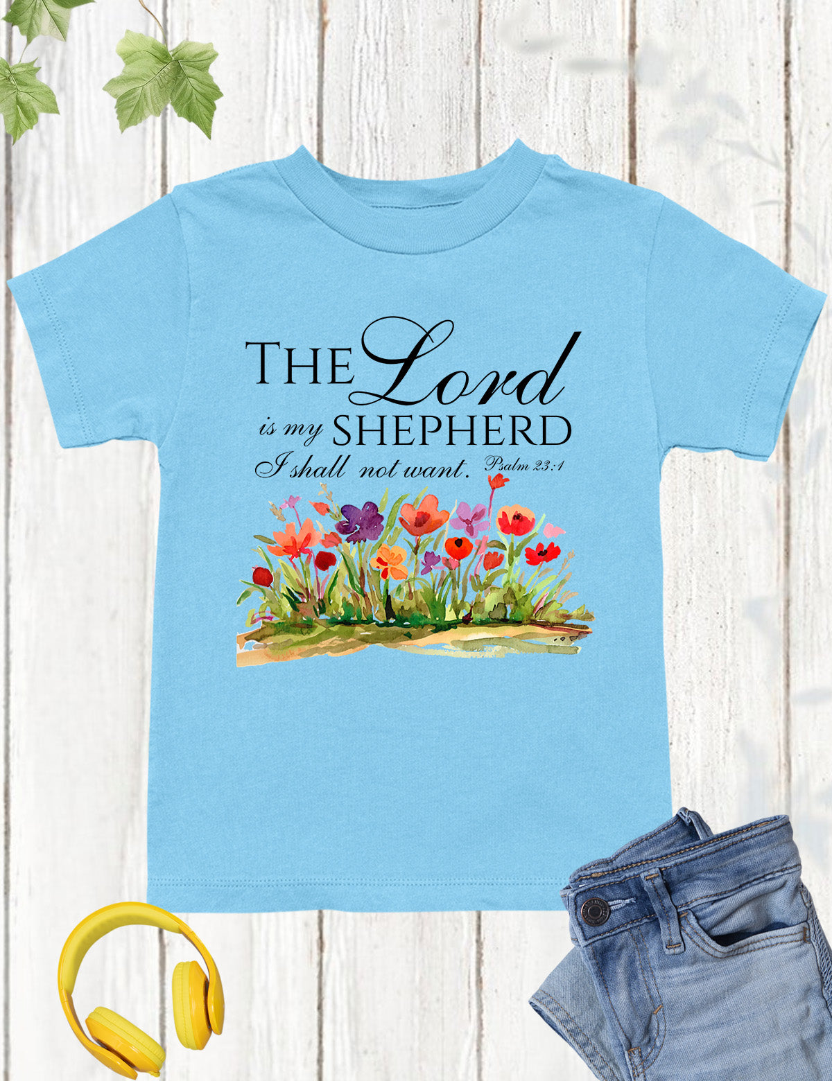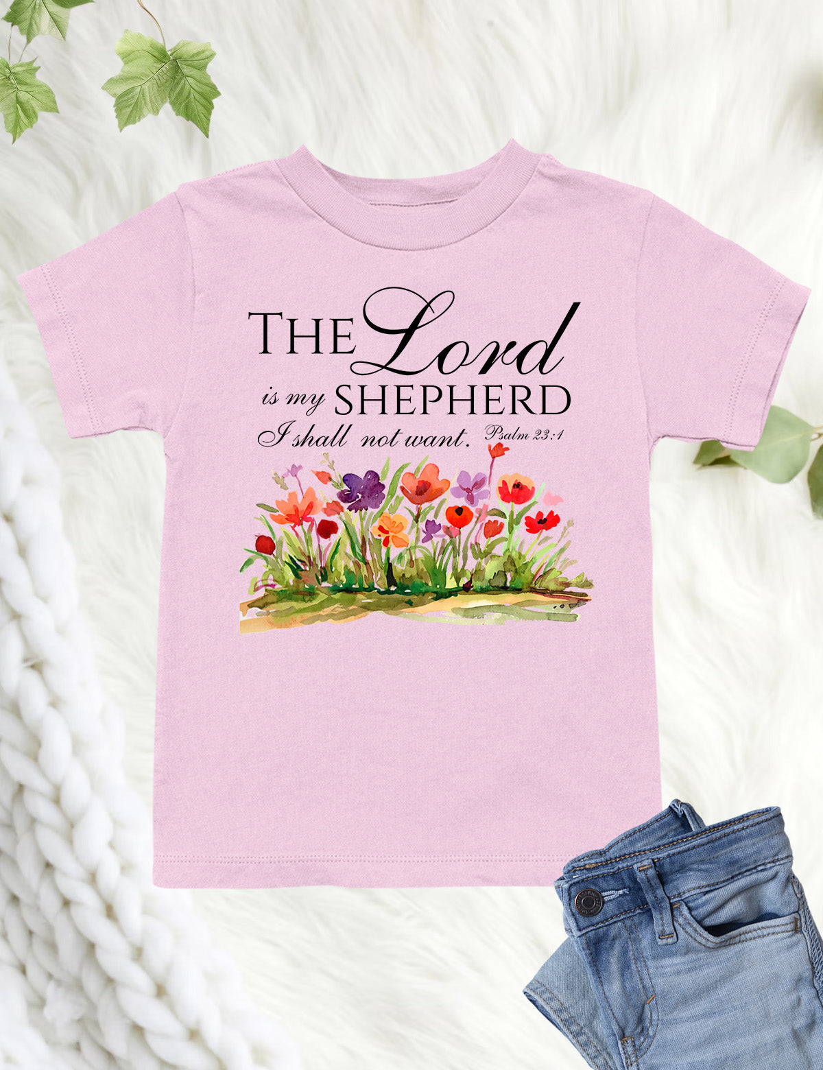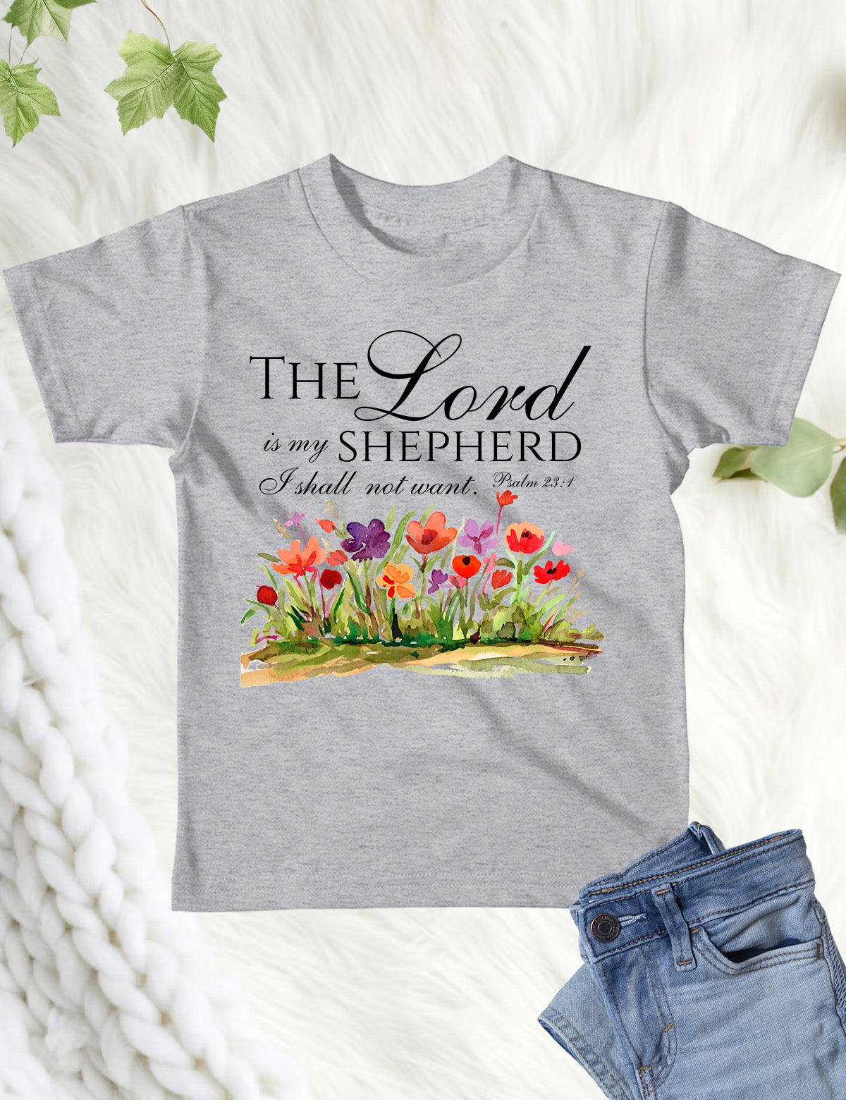 This kids shirt features the comforting Bible verse "The Lord is My Shepherd I Shall Not Want". Made with soft, high-quality material, it is perfect for everyday wear or as a reminder of God's guidance and provision. Wear your faith proudly with this stylish and meaningful shirt.