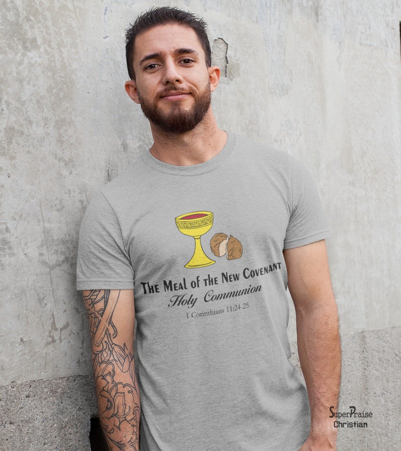 Experience the true meaning of the Holy Communion with our exclusive "The Meal Of the New Covenant" Christian T Shirt. Made with high-quality materials, this shirt is a perfect reminder of the special bond shared during communion. Show your faith and reverence with this unique and meaningful t-shirt.