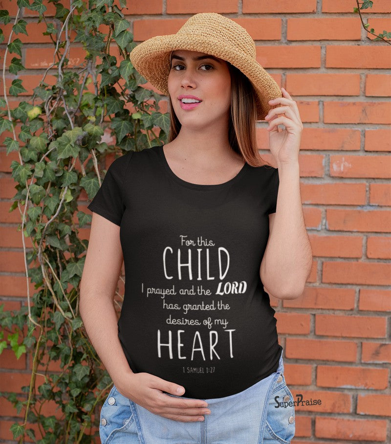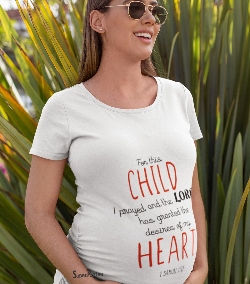 The Prayer Answered Pregnancy T Shirt is stylish for mama to be and very comfortable to wear. This bible scripture maternity t shirt is designed to show off your blessings from the Lord. Wear this pregnancy t shirt to carry the promise of God in you and your little one life. The children are a gift from God.