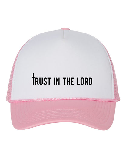 This stylish Trust In The Lord Trucker Cap is a must-have for any Christian. Featuring a bold design and durable construction, this hat will not only show your faith, but also provide reliable protection from the sun. With a timeless message and modern look, it's the perfect accessory for any believer.