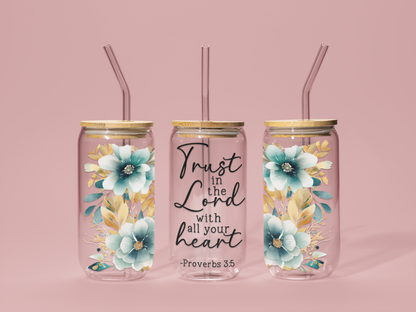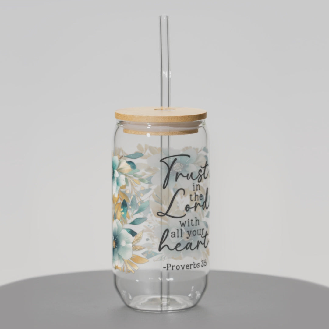 Experience the perfect blend of faith and hydration with our Trust in The Lord Libbey Glass Tumbler. Featuring a lid and straw for on-the-go convenience, this tumbler is a constant reminder to trust in the Lord. Made with high-quality glass for durability and a stylish design.