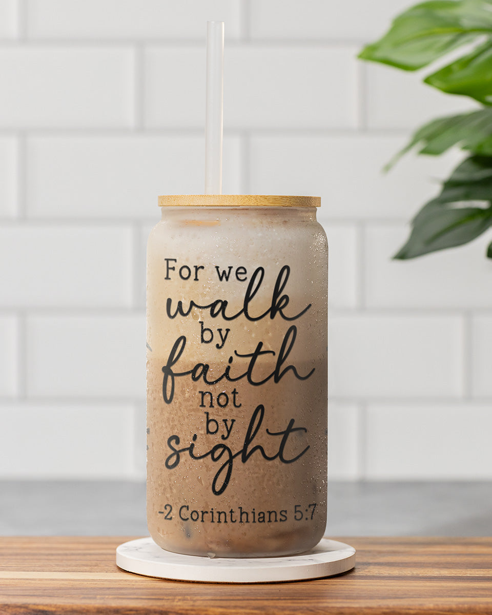 This Walk By Faith Christian Libbey Glass Tumbler is the perfect way to carry your favorite beverage on the go. With a sturdy glass construction, a convenient lid and straw, and an inspiring Christian design, it's both practical and uplifting. Promotes a faith-filled lifestyle with every sip.