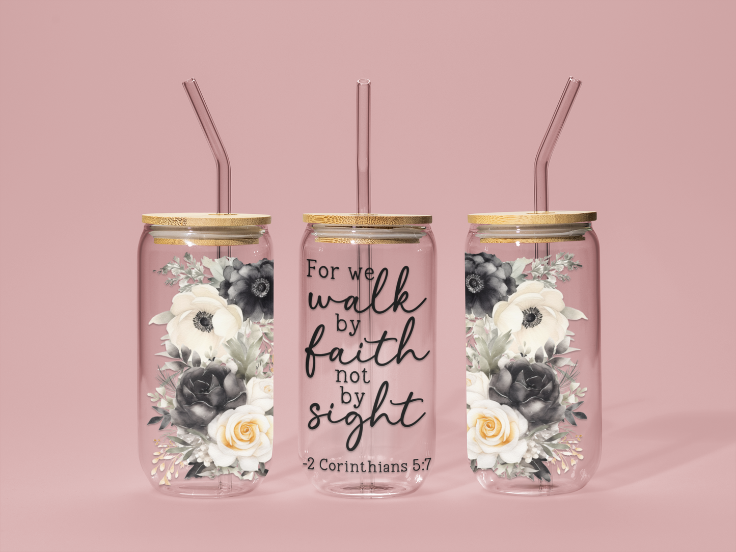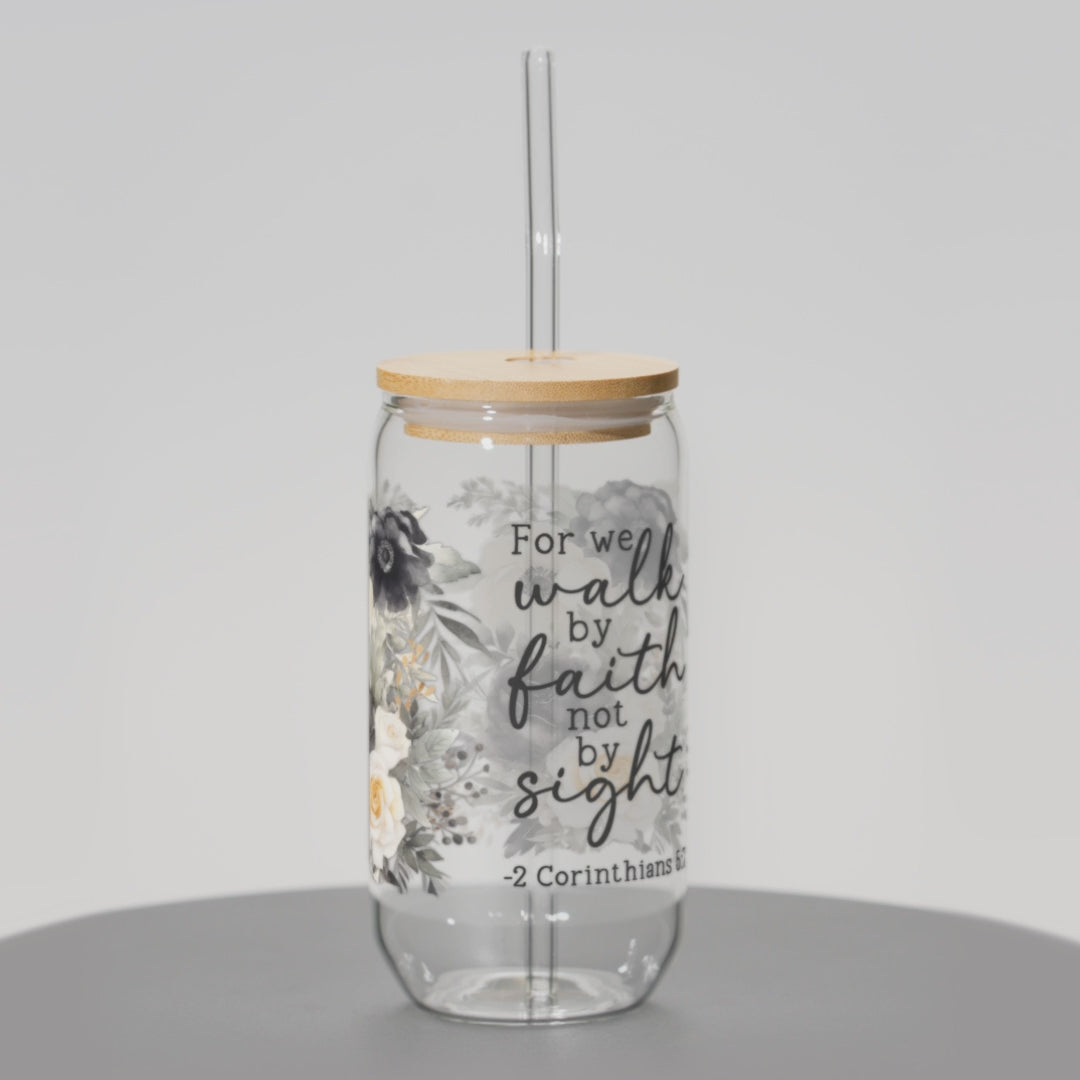 Walk By Faith Christian Libbey Glass Tumbler with Lid and Straw