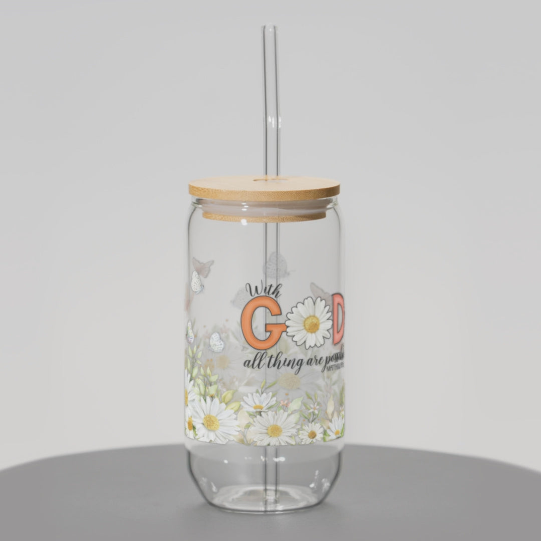 As a product expert, I can confidently say that this glass tumbler is the perfect daily reminder of your faith. With a convenient lid and straw, it is easy to take on the go and stay hydrated. Made with high-quality glass, it is durable and eco-friendly. With God, all things are possible.