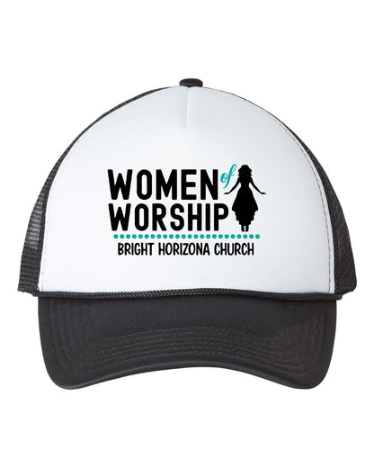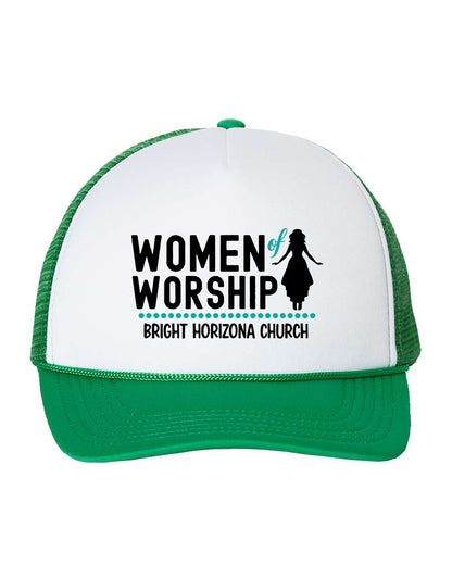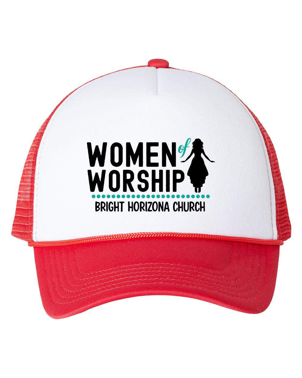 Introducing the Women of Worship Custom Trucker Cap - the perfect addition to your headwear collection. Made with high-quality materials, this hat features unique designs inspired by the powerful women in our lives. From its comfortable fit to its stylish design, this cap is sure to elevate any outfit. Show your support for women empowerment while looking stylish with this custom trucker cap.