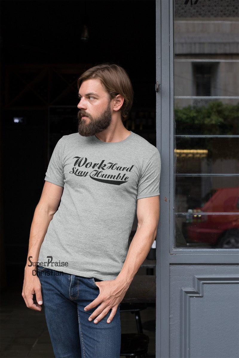 This Christian T-shirt is a reminder to stay humble while working hard. Made with high-quality materials, it's comfortable, durable, and stylish. Perfect for a casual outing or a faith-based event. Spread positivity and inspiration with this versatile and timeless design.